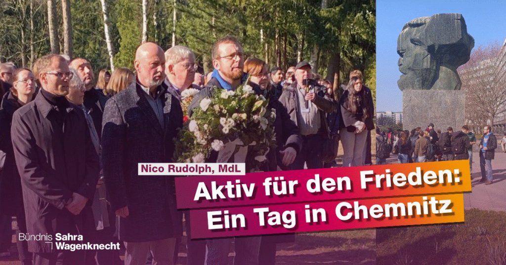 Der Chemnitzer Friedenstag erinnert an die Zerstörung unserer Stadt im Zweiten Weltkrieg. Am 5. März war ich beim Gedenken auf dem Städtischen Friedhof, beim Schulstreik gegen die Wehrpflicht am Karl-Marx-Kopf und anschließend am BSW-Infostand in der Innenstadt unterwegs.